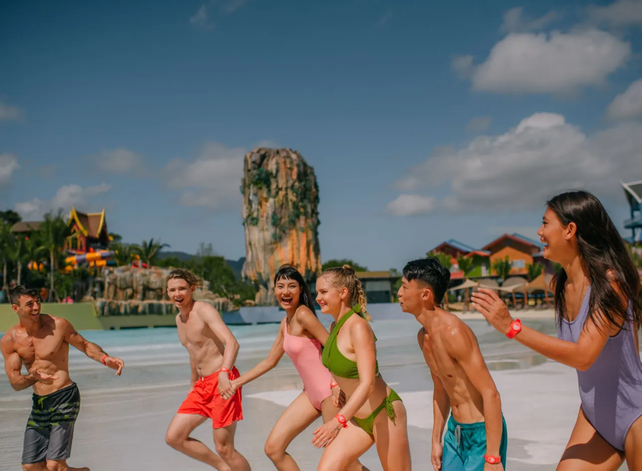 Испытайте прелесть и азарт купания в рукотворном море площадью 10 000 м² с искусственным прибоем, единственном в своем роде во всей южной части Таиланда. Волны могут достигать в высоту до 3 метров — самый высокий показатель во всей Юго-Восточной Азии. А для тех, кто желает расслабиться и насладиться видом на остров Тапу с бокалом любимого напитка в руке, идеальным местом станет песчаный пляж.