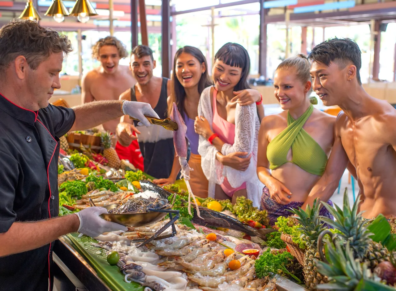 As the name suggested, Tropical Beach restaurant offers you all that is Tropical! Think juicy barbeque, fresh, succulant grilled seafood with secret spicy Thai seafood dip, fresh oysters with western and local style condiments. Don't forget to try "Koa Pad Sapparod" or pineapple fried rice, beautiful jasmine rice fragranted with juicy pineapple. Another must-try is American style BBQ ribs: super soft and tender ribs marinated in secret BBQ sauce.